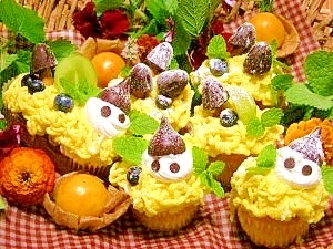 かぼちゃモンブランカップケーキ ハロウィンにも 冬のひいらぎ 秋のかえで Shinkuのレシピ ライフ